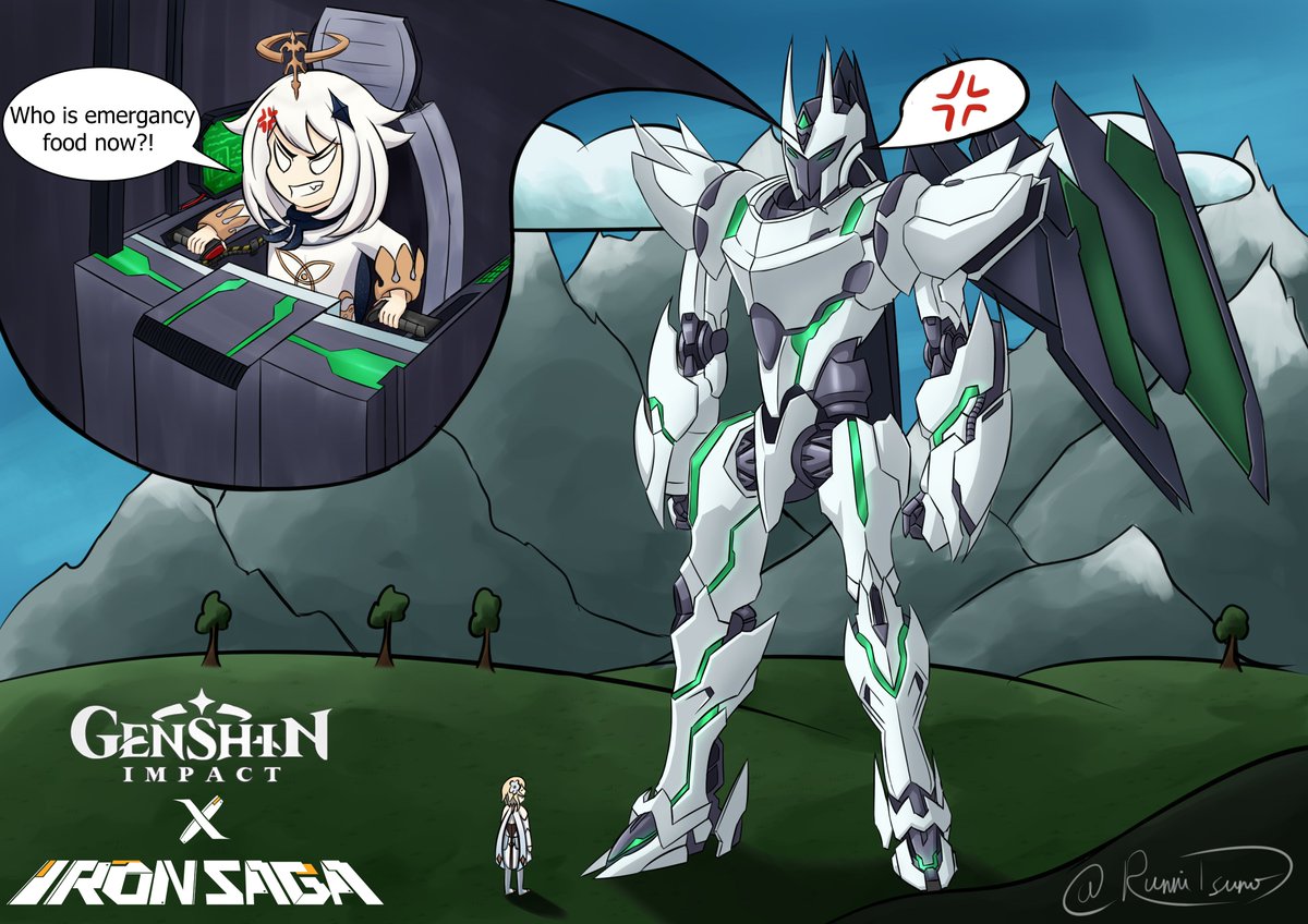 Paimon riding Paimon. A crossover between Genshin Impact and Iron Saga for a Pun. #genshinimpactfanart #ironsaga