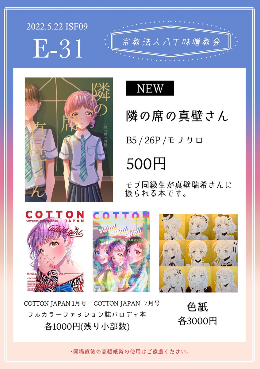 ご紹介頂きました円です🫡✨ 紙を切ってます。 初参加の今回は10/52人をメインで持っていきますが、これからどんどんメンバーを増やしていく予定です! 切り絵だけでもお気軽に見にいらしてください✂︎ #ISF宣伝生 twitter.com/hinatalovedayo…