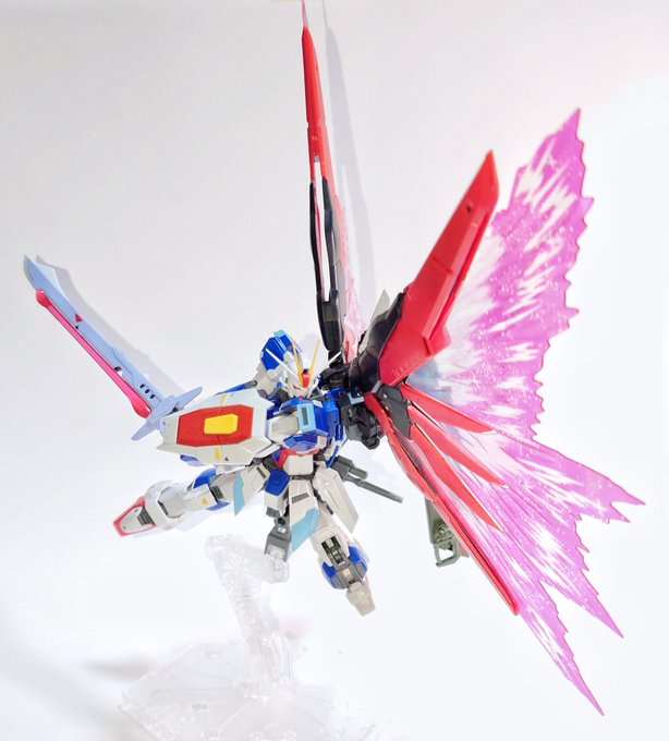 当然光の翼は付けられます。開き手には穴を開けてHGCEデスティニーのパルマフィオキーナエフェクトが付けられるように。 #ガンプラ #ガンプラ好きと繋がりたい #ガンプラの画像貼るとRTされると聞いて #ISPWC2022
