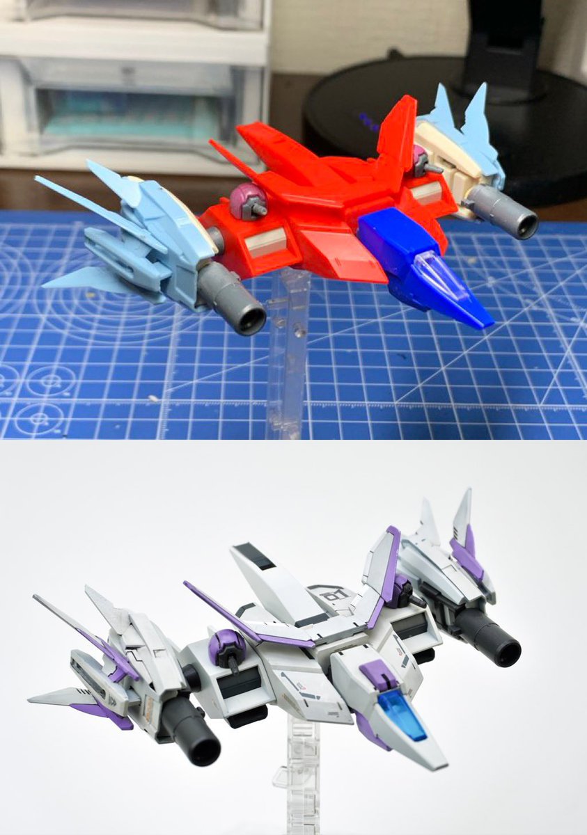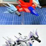 ■完成報告③-1 #ISPWC2022 参加作品 ZGMF-X56S/mv ミネルバインパルスガンダム ポージング画像 改修中にブンドドしていて気付けた、 バックパックの下部の向きを変えることで、 フォース(1枚目)やブラスト(2枚目)のような見た目になる点も推しポイントです #ガンプラ twitter.com/ispworldcup/st…