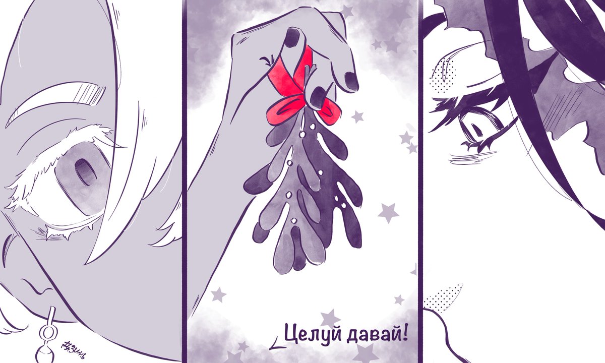 #TRadvent2022 day23 Какучо пришел Эмме на подмогу с готовкой, но… Изана уже успел разобраться с елкой (заберите у него омелу) 🤭💜 (почему целуются они, а стыдно мне, я так больше не могу 🫠) #tokyorevengers #東卍FA #izana #izanakurokawa #kakucho #kakuzana #izakaku