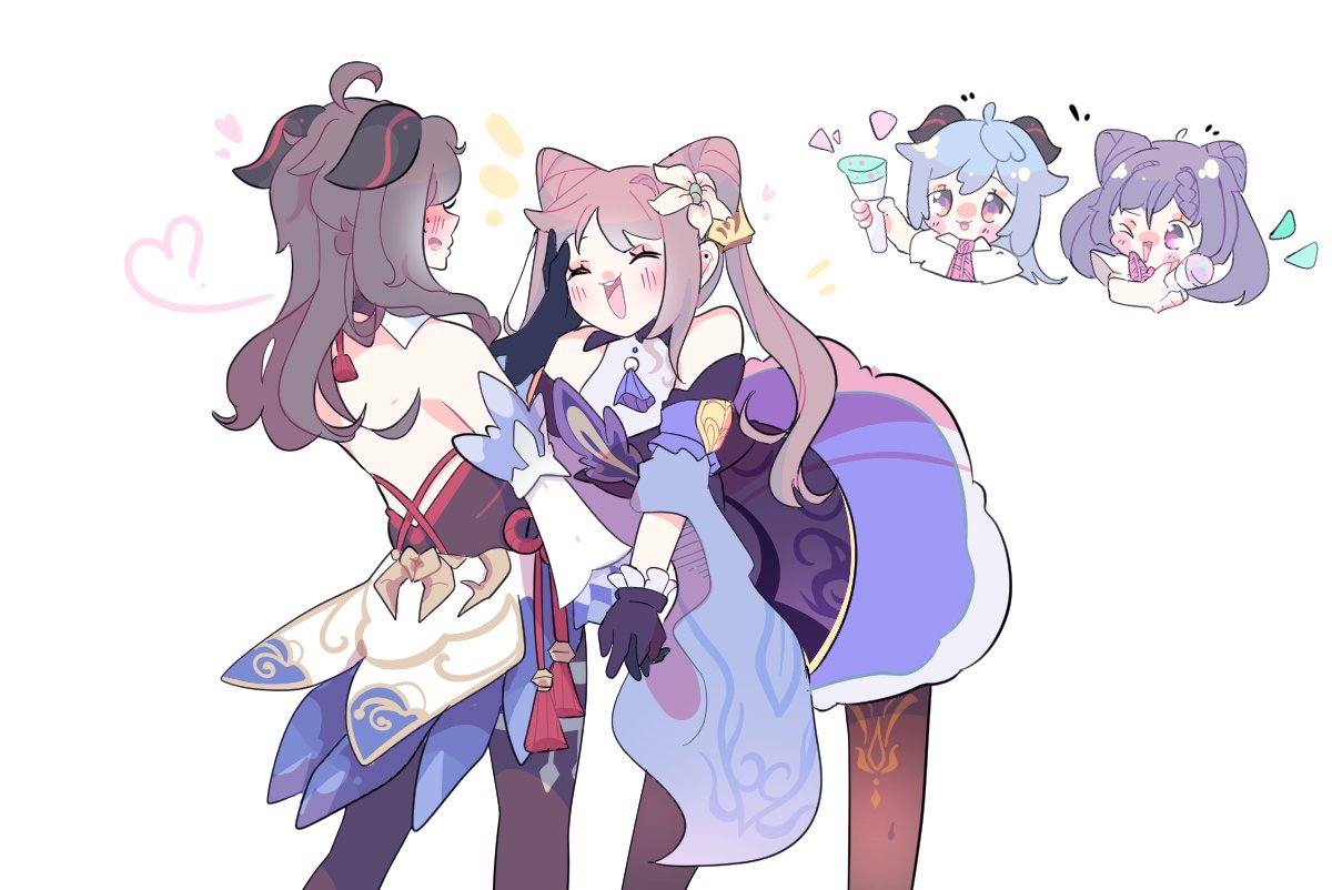 Sakura and Chaeyeon dressed as Keqing and Ganyu for Halloween, with the newest Wiz*Ones! #izone x #genshinimpact