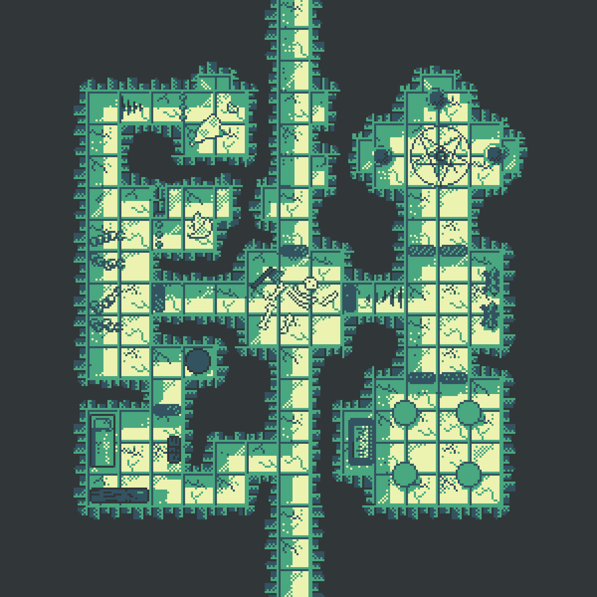 A dungeon map I drew a while ago and have since recoloured with the #icyWitch palette . . . #pixelart #pixelartist #art #ArtistOnTwitter #pixels #ドット絵
