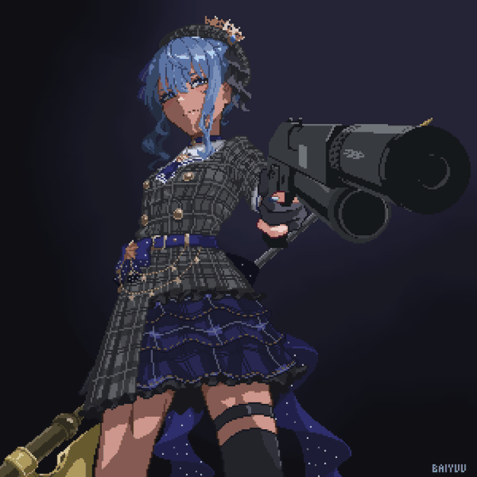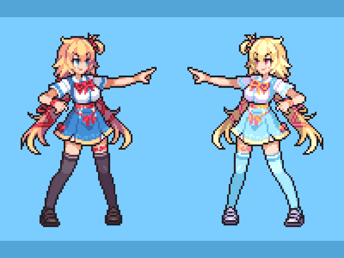 I loved the Idol Showdown sprites, so I wanted to create something similar. Ended up with a smug Suisei. I tried to maintain the same style as the game #IdolShowdown #pixelart #ドット絵 #ほしまちぎゃらりー