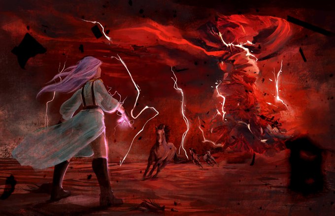 #Imogen and the red storm of her dreams. Run. I'm curious what direction @LauraBaileyVO and @matthewmercer will take with this storyline. I wait so eagerly for more! #CriticalRole #criticalrolefanart #CriticalRoleCampaign3 #storm #dreams