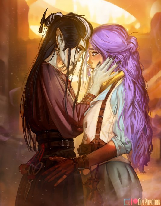 They are on a date! My goal for doing fanart was to do quick, simple, drawings. I...have failed at that spectacularly. #CriticalRole #CriticalRoleCampaign3 #criticalrolefanart #criticalroleart #critter #laudna #imogen