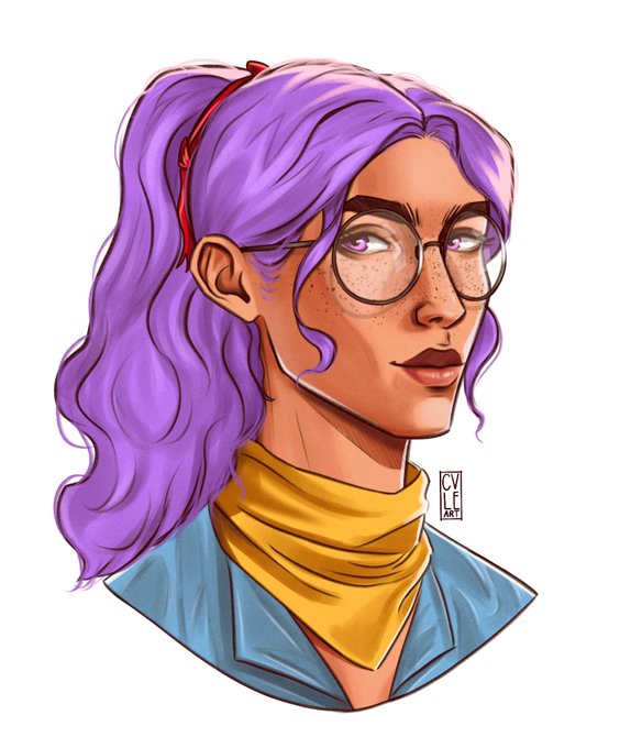 Imogen Temult. More attempts with watercolour tools in Procreate (see thread). I'm in love with the soft colours here, of her colour scheme in general. 💜💙💛 #criticalrolefanart #imogentemult #CriticalRole