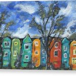 Neighborhood canvas print. This and other products with this image of my original painting found here: fineartamerica.com/featured/neigh… #buyintoart #findartthissummer #springforart #SupportArtists #ArtistOnTwitter #painting #art #whimsical #colorful #impressionism