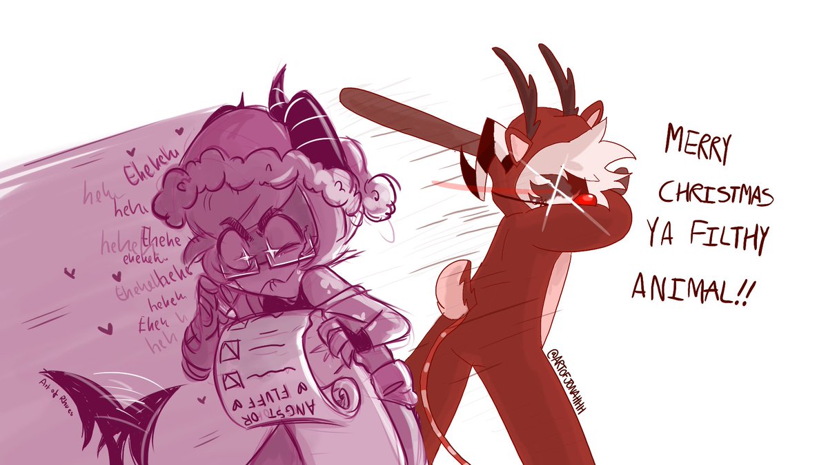 🎄She's making a list...It's gonna be rough...Going to have to choose if it's angsty or fluff...🎄 Silly little aggie collab with @artofjonahhh of our impsonas. Mines writing the list and his is in the Rudolf costume... #HelluvaBossFanart #impsona #merrychristmas #artofrhues