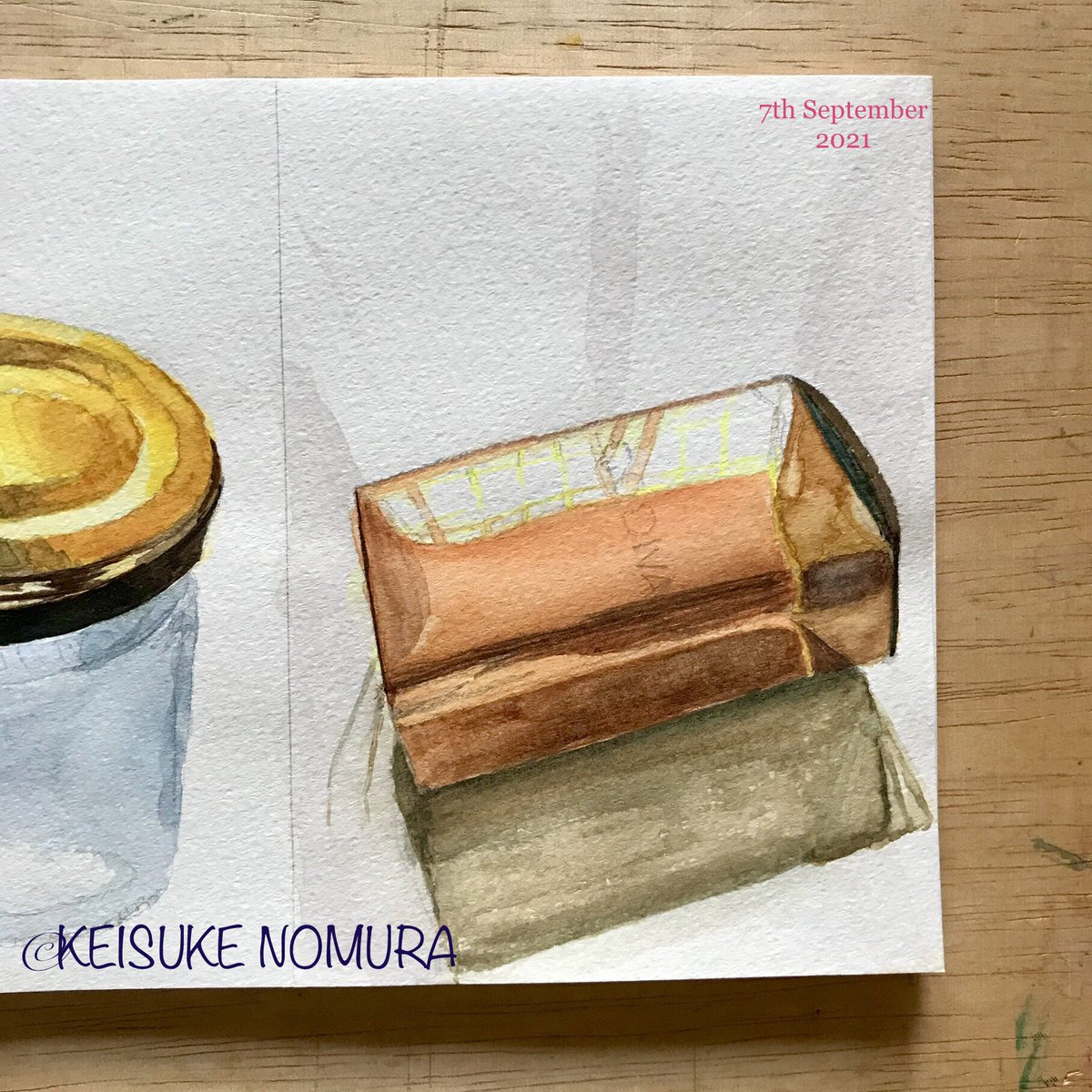 #Watercolor #painting a #cans Details of work in progress. First wash #Bottle #瓶 #gold #金色 のある #風景 #lightanddark #DALERROWNEY #水彩画 #Watercolor #art #painting #artontwitter #pencilsketch #artlover #inshot #Video #japan #monaco #paris #nyc twitter.com/keisukenomu/…