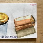 #Watercolor #painting a #cans Details of work in progress. Sixth wash #Bottle #瓶 #gold #金色 のある #風景 #lightanddark #DALERROWNEY #水彩画 #Watercolor #art #painting #artontwitter #pencilsketch #artlover #inshot #Video #japan #monaco #paris #nyc twitter.com/keisukenomu/…