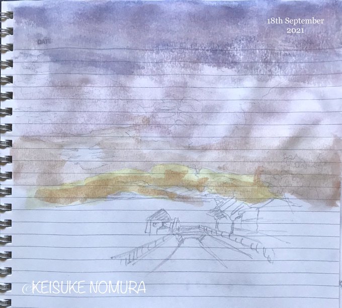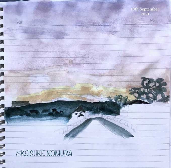 #Watercolor #painting a #sunset Details of work in progress. First wash #cloud #夕空 #夕焼け のある #風景 #lightanddark #DALERROWNEY #水彩画 #Watercolor #art #painting #artontwitter #pencilsketch #artlover #inshot #Video #japan #monaco #paris #nyc twitter.com/keisukenomu/…