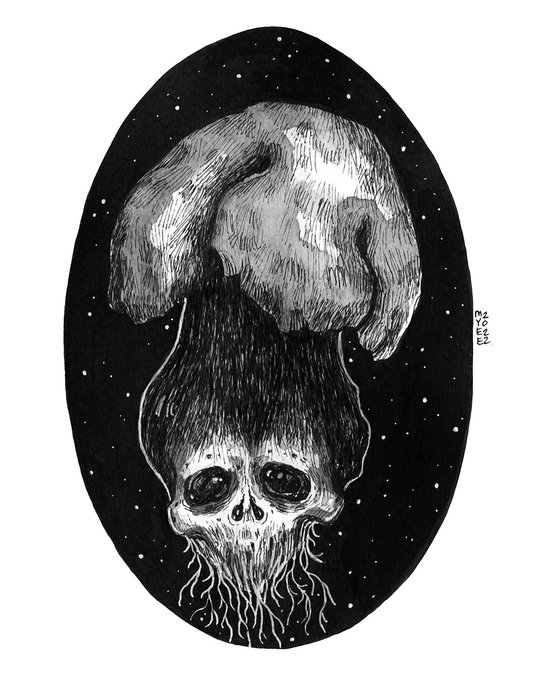 Day 03 : Mushroom 🍄 (@a_n_d_gallery) • #art #illustration #painting #ink #indiaink #micron #drawtober #drawtober2022 #artistsoninstagram #instaartist #mushroom #mushrooms #devilsbolete #bolete #skull #skeleton #roots #nature #botanicalart #horror #horrorart #halloween #spooky