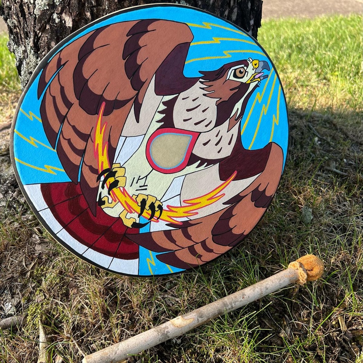 Happy #IndigenousPeoplesDay !!! Here is some of my woodland art, Lenape ribbonwork inspired piece, and my personal hand drum! I love being native and want to be able to powwow dance in the future!!