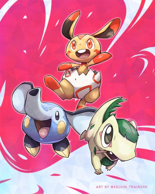 Happy Independence day to #Indonesia! 🇮🇩 My Indou Starters from all the way back in 2017, are making their annual return to celebrate 🥳 Meet Komoko, Bunball, and Elephump! Enjoy! RTs are much appreciated 🤍 #Pokemon #PokemonArt