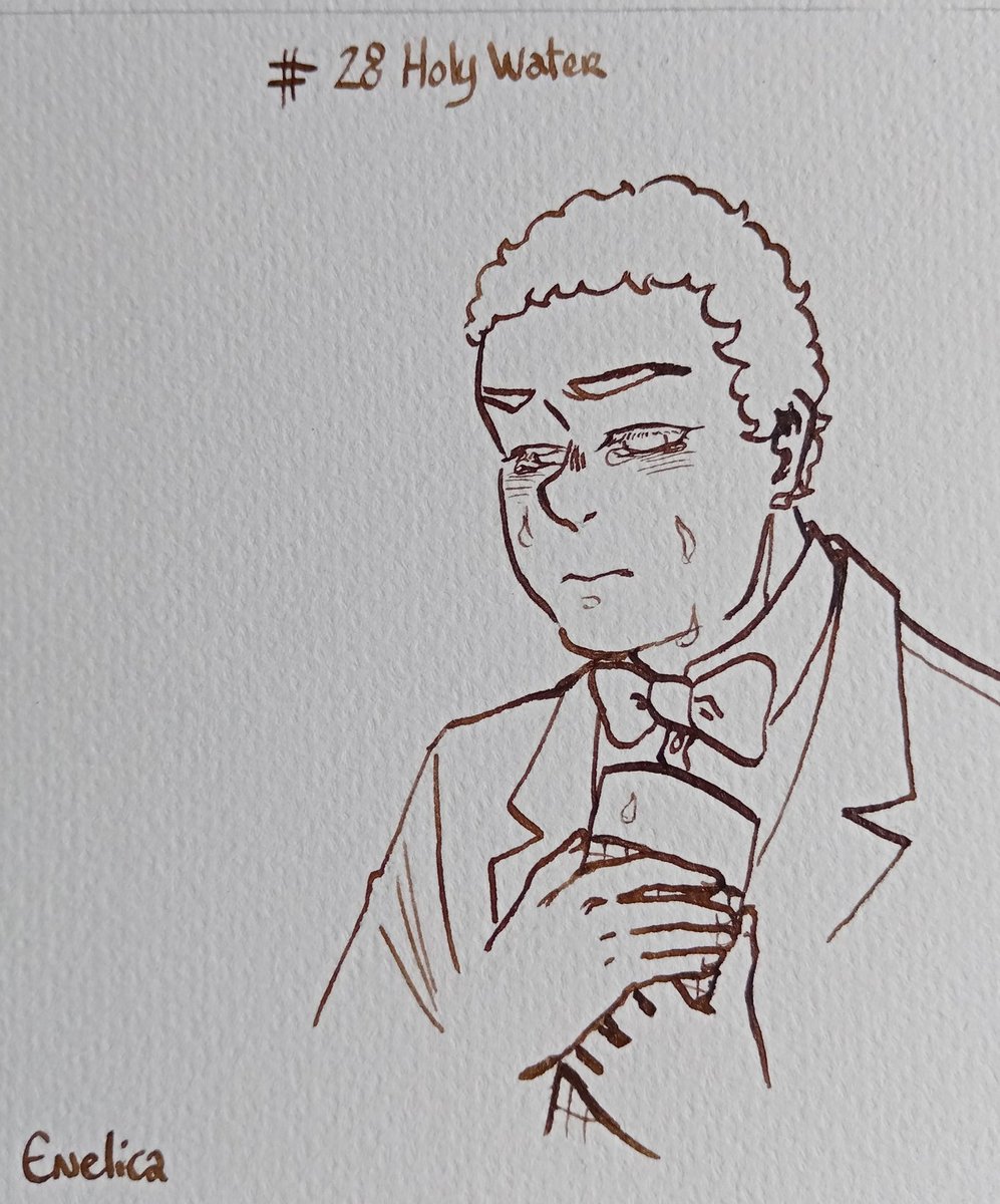 Day 28 : Holy Water Not very inspired for today, I already draw this theme a few times 😅 #ineffableinktober by @koko_iep #enelicart #goodomens #inktober2022