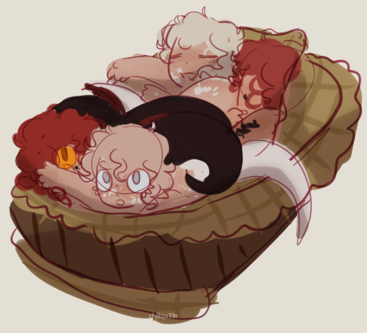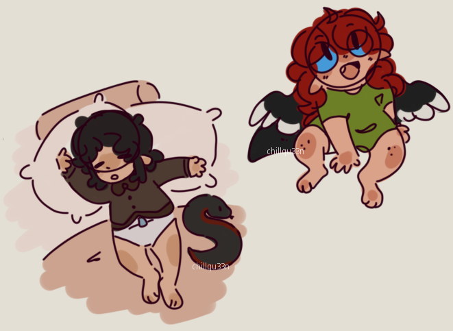 Lil babies, first @Ranguvar82 @vanthefanenby 's Tabris and Ineffable parents. The two lil girls are Scarlett and Mia from my fanchild au. Last one is Ben (CrowleyxSatan) from an another au. --- #goodomens #Crowley #Aziraphale #GoodOmensFanArt #ineffableparents #ineffablehusbands