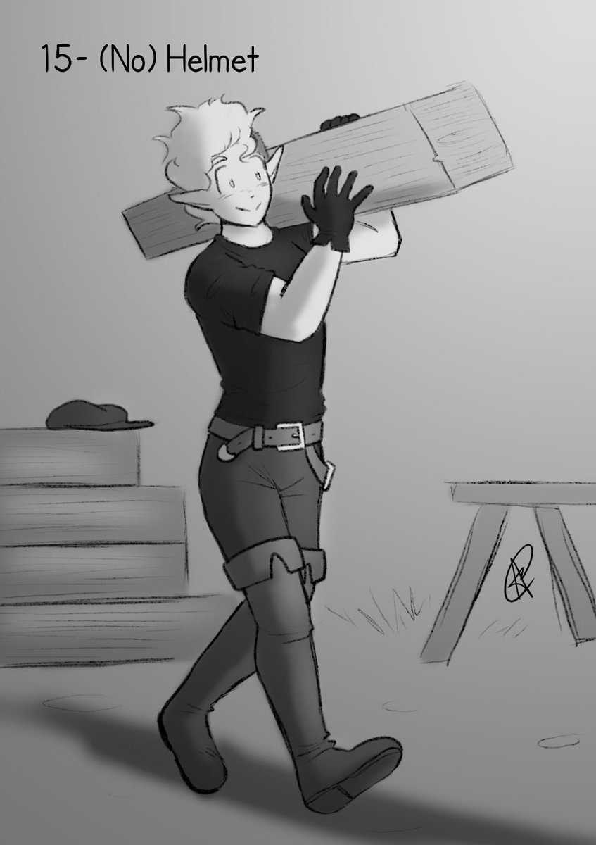 Inktober Day 15 - Helmet Issé's dream is to be a carpenter. He loves working with wood. But when Naya wanted to leave home to go on her own adventures, he gave up his dream to follow her. #Inktober #inktober2021 #inktober2021day15