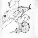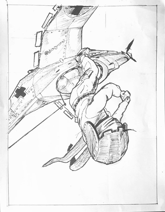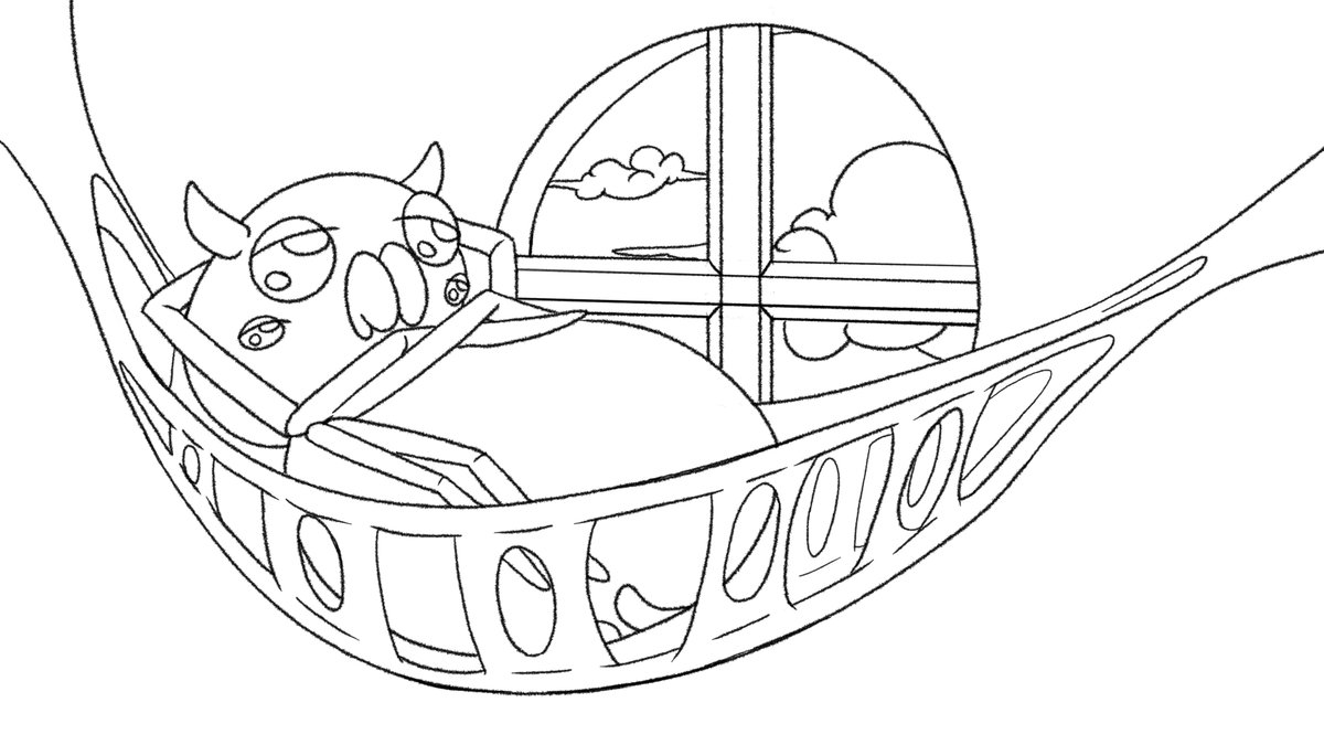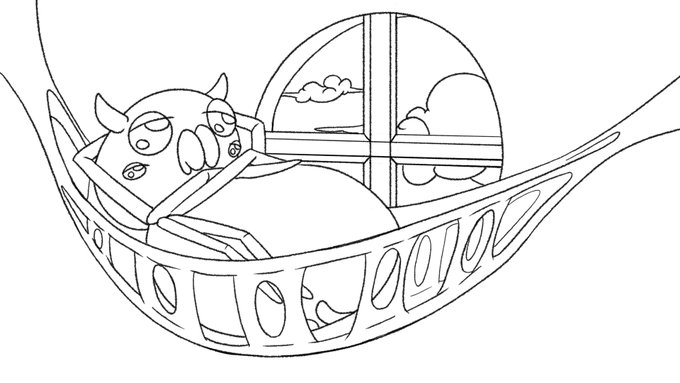 #inktober2021 #inktober2021day19 Having been accepted onto the flying house ship, the spiderling #loop -s itself a little hammock.