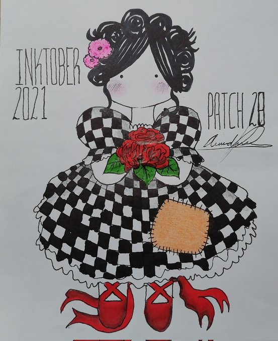La muñeca me trae recuerdos, yo solía ponerle en el reverso del dibujo una frase del día. #inktober #inktober2021 #inktober2021day29 #inktober2021day29patch