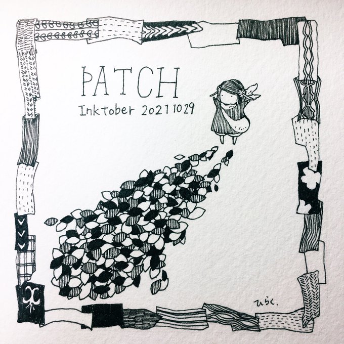 10/29: PATCH 秋が作ったパッチワーク。 This is a patchwork made by Autumn. #inktober2021 #inktober2021day29 #Pavot #ペン画