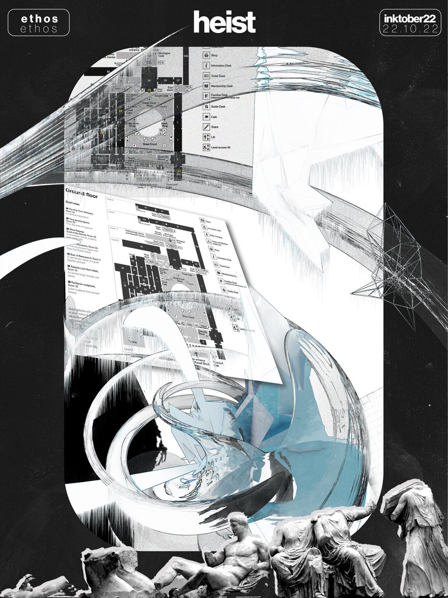 22 - heist. (this piece may or may not be about the british museum.) #inktober2022 #inktober2022heist