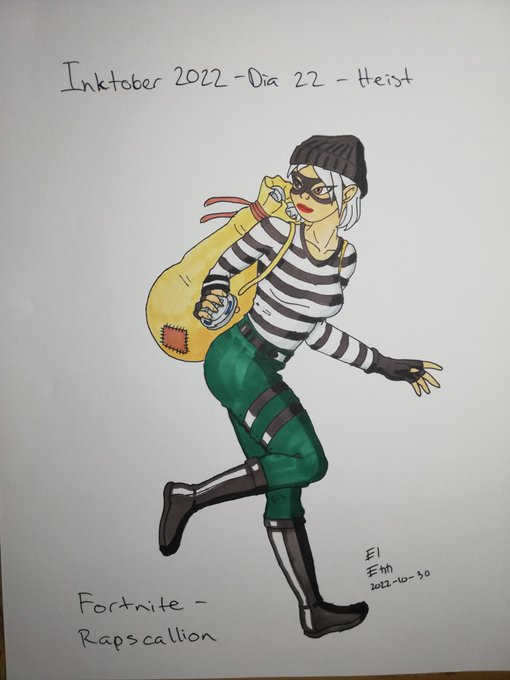 Para el día 22 del #inktober2022 el tema es heist, así que puse a Rapscallion de Fortnite llevando a cabo un exitoso golpe de monedas V. #inktober2022day22 #inktober2022heist #Inktober #Fortnite #FortniteRapscallion #markers