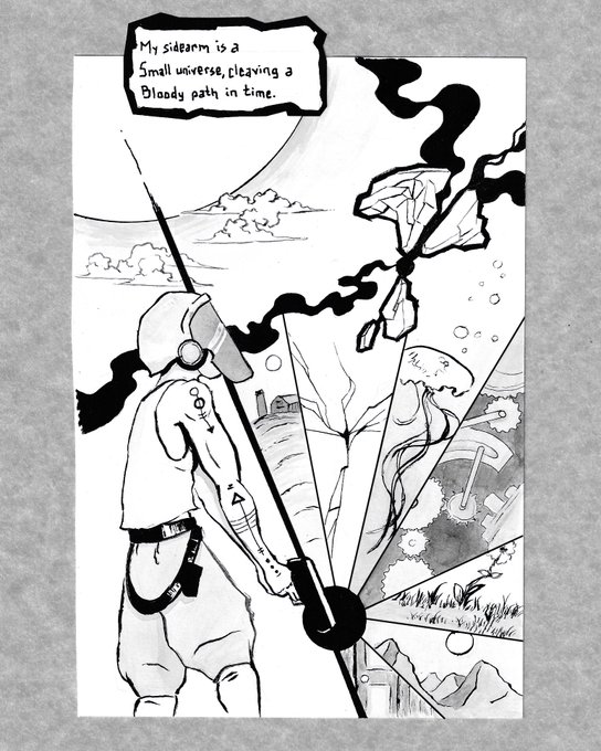 INKTOBER no 6 My sidearm is a Small universe, cleaving a Bloody path in time. #inktober #inktober2022 #inktober2022day6 #haiku #poetrycommunity #amdrawing