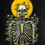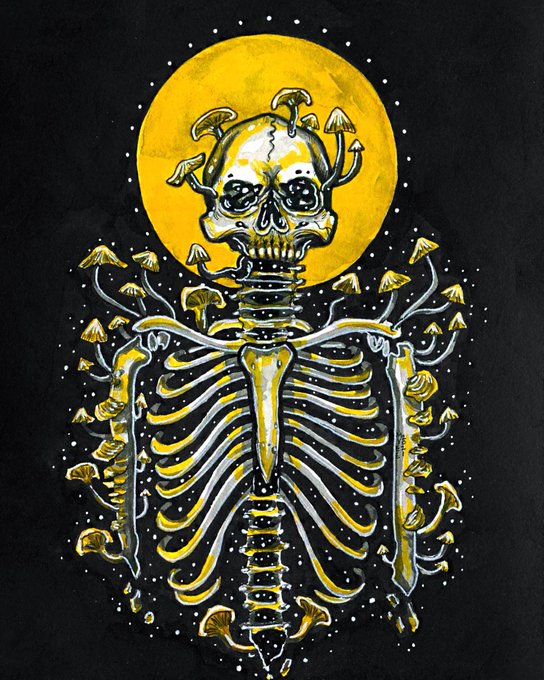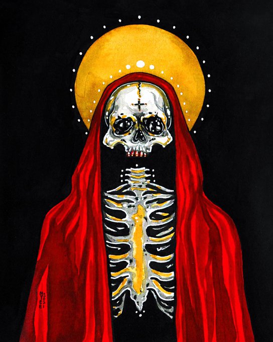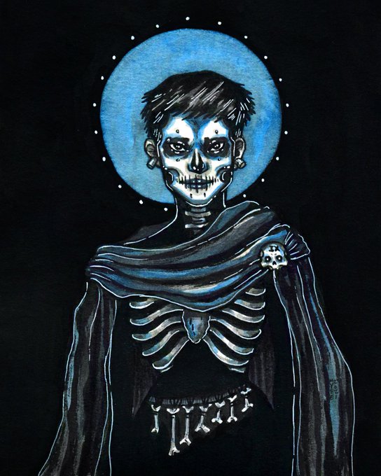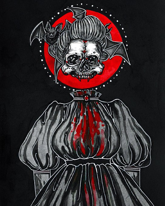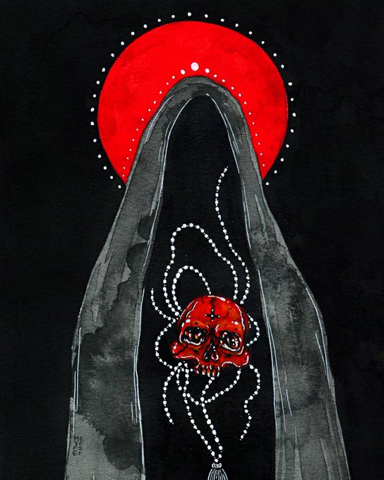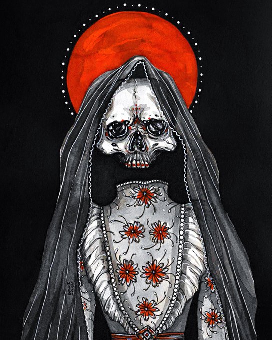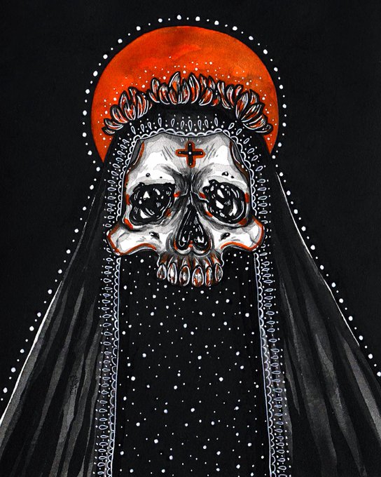 Day 24 : Memento Mori 🌼 (NFS) • #art #illustration #painting #ink #indiaink #coloredink #micron #inktober #inktober2021 #InkedBones2021 #characterdesign #skeleton #skull #bones #mementomori #death #veil #goth #gothic #horror #horrorart #halloween #spooky #myeeart #theboneforest