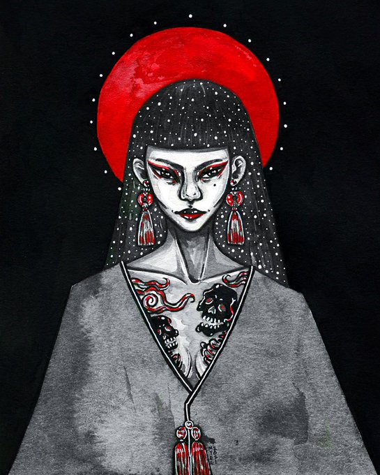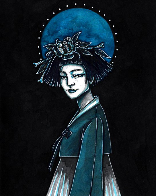 Day 31 : Harvest 🎃 (SOLD) • Happy Halloween everyone! 💀👻⚰️🪦🧛🏻♀️ • #art #illustration #painting #ink #indiaink #coloredink #micron #inktober #inktober2021 #InkedBones2021 #characterdesign #pumpkingirl #jackolantern #pumpkin #lolita #cute #bats #horror #horrorart #halloween