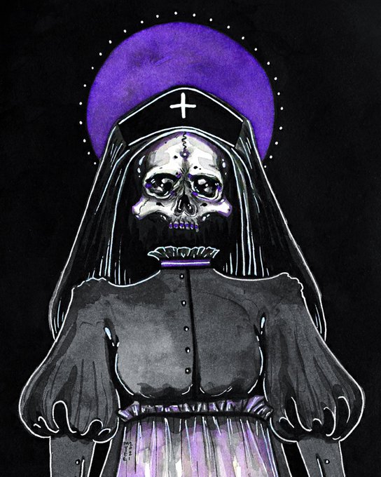 Day 14 : Memory 🏥 • Based off of a photo of my great-grandmother from when she was a nurse! 🖤 • #art #illustration #painting #ink #indiaink #coloredink #inktober #inktober2021 #InkedBones2021 #characterdesign #skeleton #skull #bones #nurse #skeletonnurse #horror #horrorart