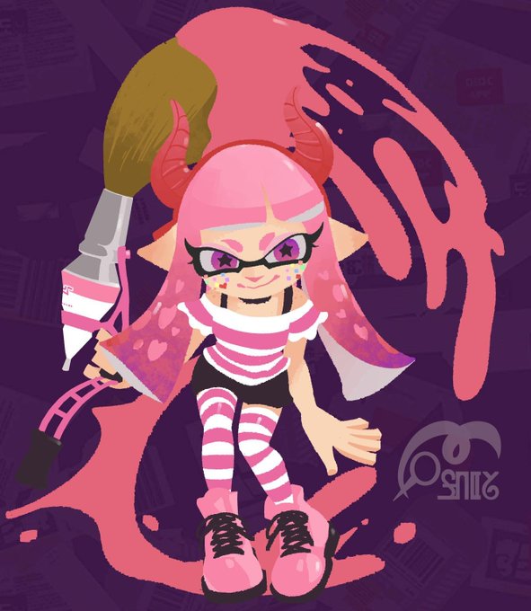 there! i finished it. happy 5th birthday, #Splatoon2! (ok this could’ve turned out better, i don’t think her right leg ended up looking like it’s pointed more towards the camera than her left, like i MEANT it to. oh well :V) #splatoon2art #inklinggirl #スプラトゥーン2 #イラスト