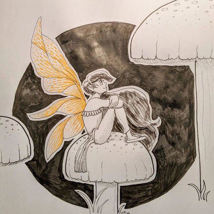 This is the only #inktober I can do this year: the prompt "Fairy"! I loved using the gold inks ☺️ perhaps I'll be able to do the whole month next year. #inktober2022 #inktoberfairy #inkonpaper #drawing #drawingchallenge #illustration #doodle #art #artis… instagr.am/p/CkGjBoEu05N/