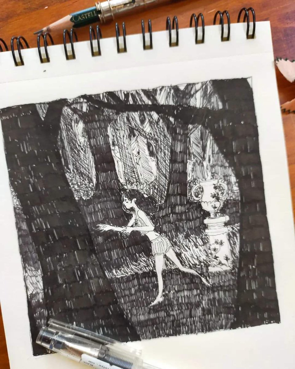 Non so se riuscirò a portare a termine questa idea. Ad ogni modo questa è una delle tavole illustrate per il libriccino intitolato "Mondi invisibili - il primo viaggio". Cosa ne pensate? ❤️ diegogabriele.it ☕ ko-fi.com/diegogabrielea… #illust #inkpen #inkdrawing #inkdraw