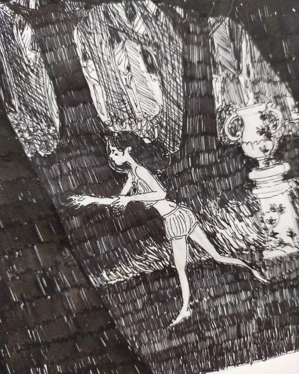 "Photo of Catherine on her 15th birthday." "Foto di Catherine il giorno del suo quindicesimo compleanno." ❤️ Shop: bit.ly/3UmXCTS ☕ Buy a coffee with Ko-Fi: bit.ly/3UkmFHr #illustration #inkpen #sketchbook #sketchlover #scarabocchi #illu