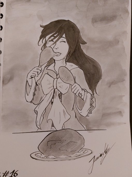 Irgendwie geht es momentan viel ums Essen. #alice #inktober #ink #inked #inkwashing #inktober2022 #inktober16 #inktoberday16 #fowl #inktoberfowl #inktobergermany #inktoberday16fowl2022 #inktoberday16fowl #pandorahearts #pandoraheartsalice @inktober
