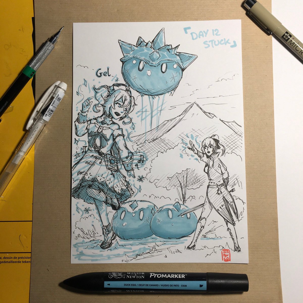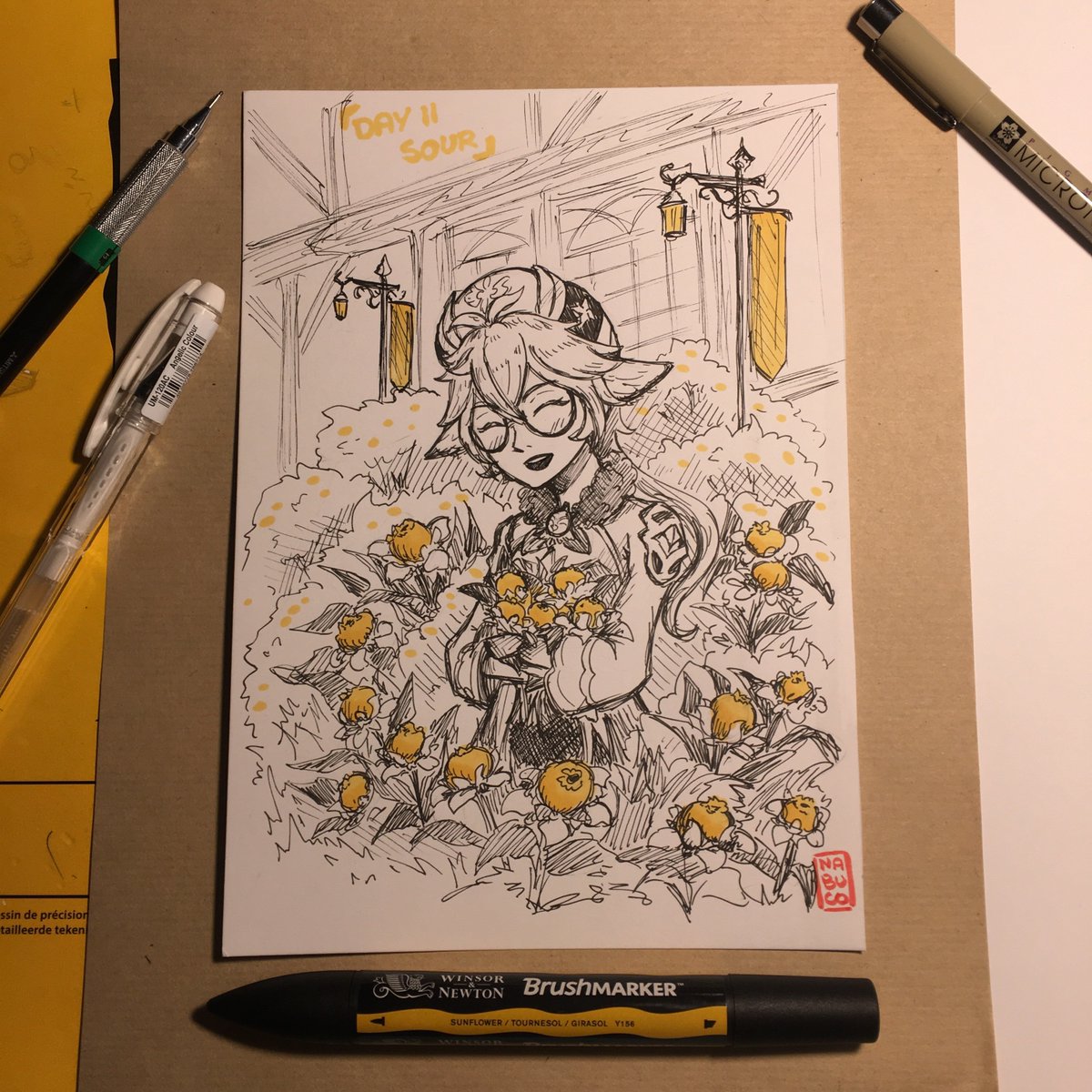 🟡Ça avance !! #inktober2021 !! • #inktober2021day11 - Sour : #Sucrose • #inktober2021day12 - Stick : #Barbara & #JeanGunnhildr