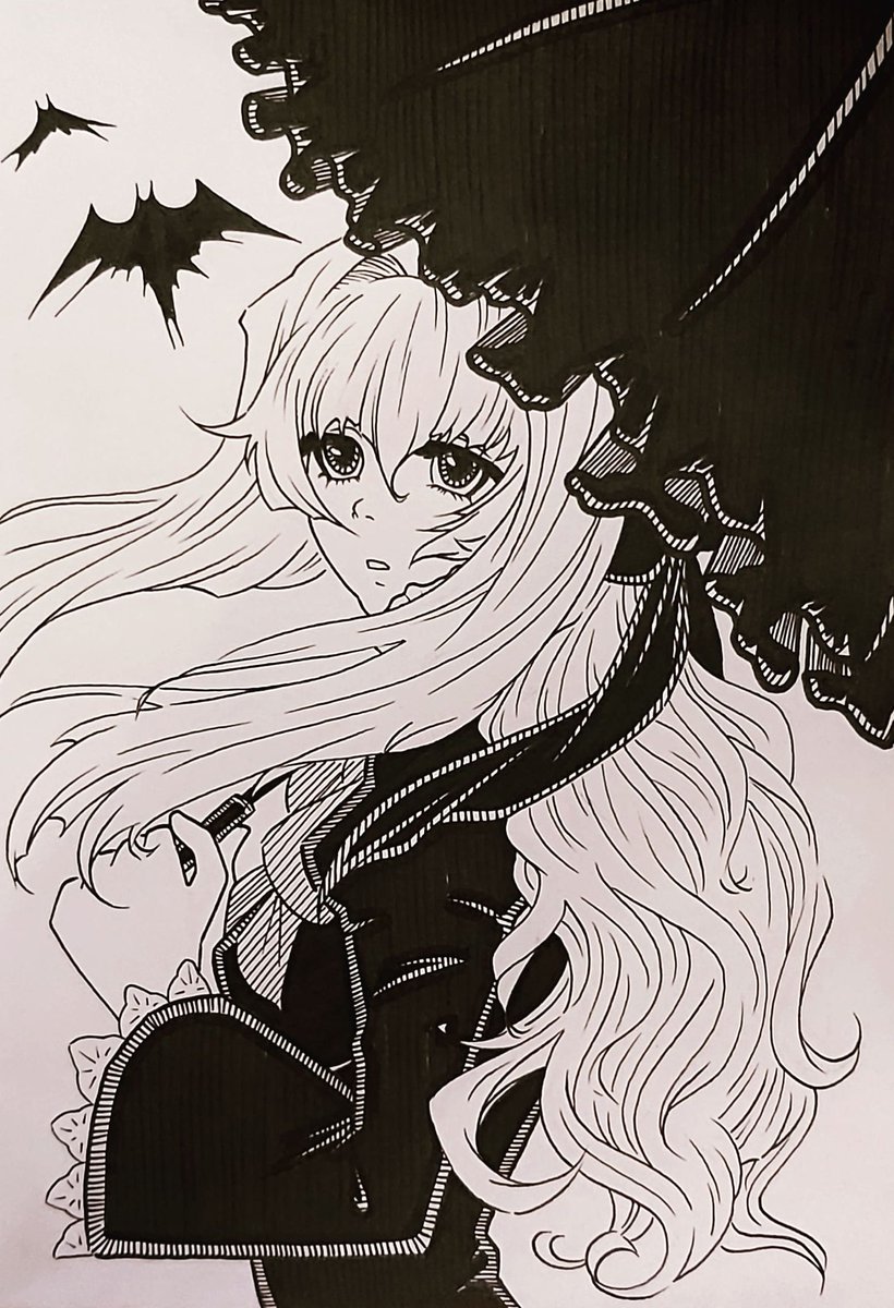Inktoberday 11: Cheeky Vampire #ink #Inktober #inktober2021 #inktober2021day11 #cheekyvampire #anju #anjumaaka #maaka #Vampire #bats #umbrella #anime #manga #art #artwork #traditionalart #fanart #FanArtFriday #drawing #illustraion #blackwhite