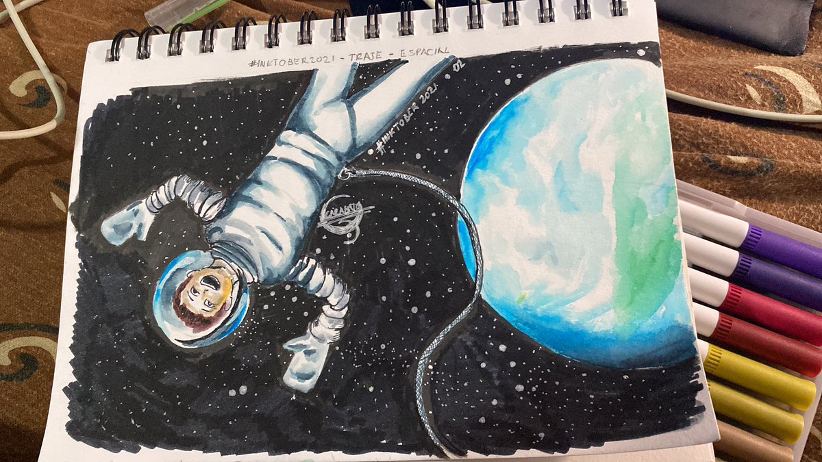 Did I say I was very veeeery late with #Inktober ? Well here is #inktober2021day2 lol. Space suit. Markers and white ink pen.