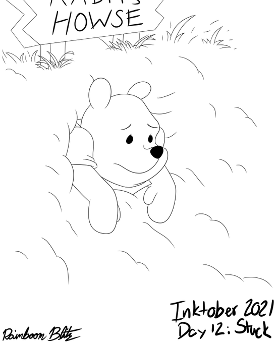 Inktober 2021 - Day 12: Stuck After Pooh eats so much honey, he was ready to leave from Rabbit's House but suddenly, Pooh gets stuck on the Rabbit Hole #WinnieThePooh #Pooh #Disney #Inktober2021 #Inktober2021Day12 #Inktober2021Stuck