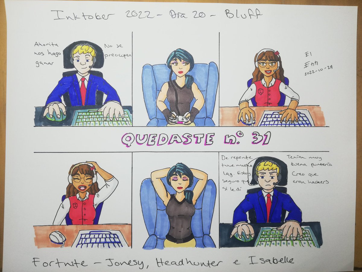 El último del día. Para el tema de Bluff del #inktober2022 puse a Jonesy de #Fortnite hablando de más antes de una partida. #inktober2022day20 #inktober2022bluff #fortnitejonesy #fortniteheadhunter #FortniteIsabelle #markers #drawing