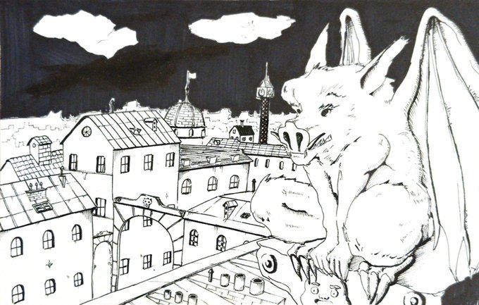 Inktober 2022 - 01. Gargoyle Tarda, mas não falha. achei as sombras meio zuadas mas o conceito legal. #Inktober #Inktober2022 #inktober2022day1 #inktober2021Gargoyle #inktoberGargoyle #inktoberday1