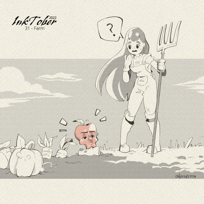 #inktober 31 Farm. En homenaje a #GrowingSeason ahora que @EricRod_LYV va a sacar el segundo juego. (Siempre quise hacer algún dibujo para @RanguGamer y su nena, pero me daba vergüencita XD) #inktober2022 #inktober22