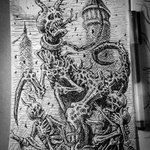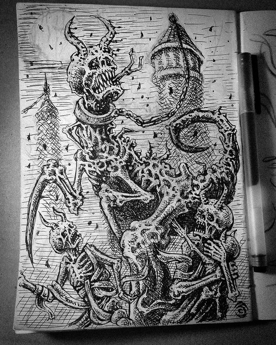 Inktober52: Prompt 17 - Dino Dinosaurs don't quite fit the demonic atmosphere of the series of my messy sketches, so I had to change the prehistoric monster a little bit. #darkart #inktober52dino