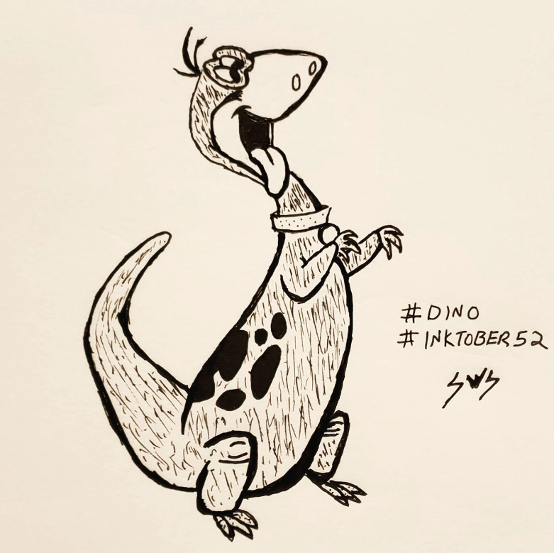 The snout's a little small, but hey it's practice, practice, work that muscle 😀😀 🦖 #inktober #inktober52 #inktober52dino #dino #flintstones #theflintstones @inktober #ink #inkdrawing