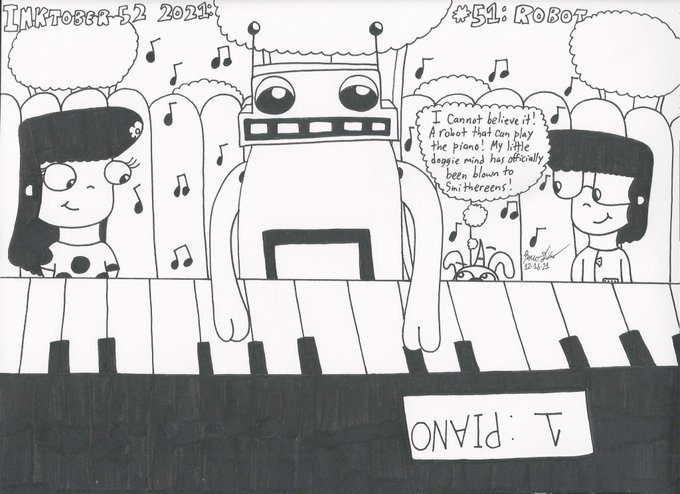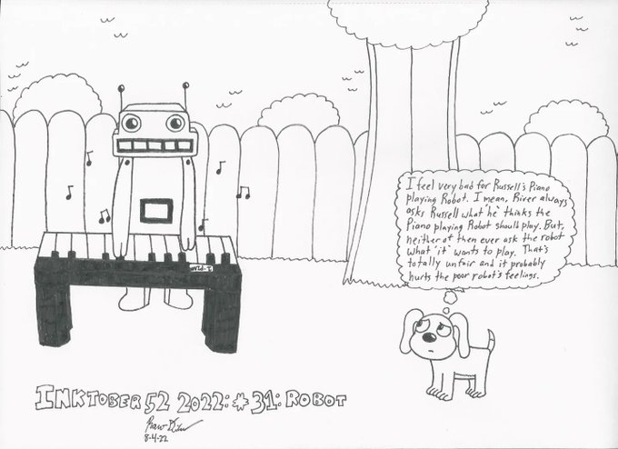For the penultimate #inktober52 2021 #comic, we once again witness Russell's Piano Playing: Robot. #inktober52robot #inktober2021 #inktober #art #artwork #drawings #artoftheday #penandinkdrawing #minchopigmentliner #thesecretbeauty