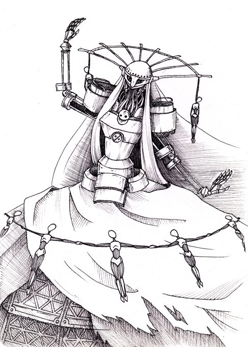 31. Robot. "Not a moment passed where I didn't strive to become more beautiful. But he still won't look my way." #inktober #inktober52 #inktober52robot #robot #boss #nierautomata #simone #beauvoir #machinelifeform #machine #bossesthatmademecry