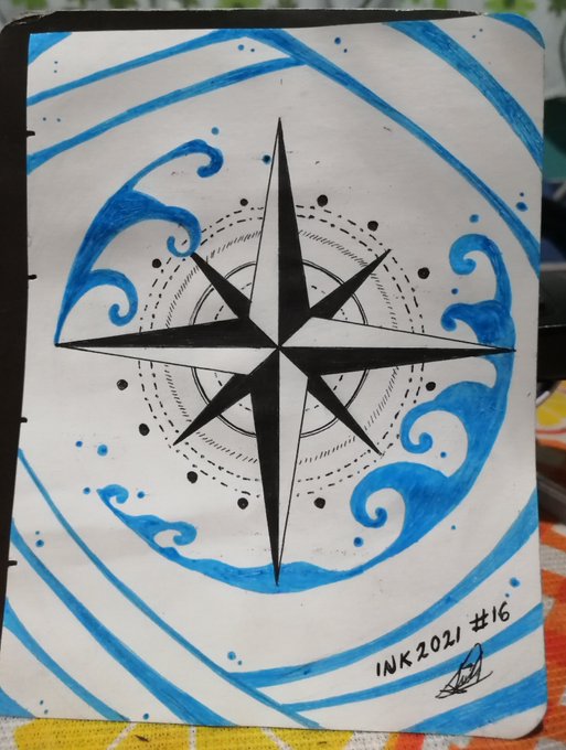 Día 16 del #inktober - Brújula Un poco rápido ya que me fui de vaga xD aún no puedo creerlo, ya vamos a mitad de mes :O #inktober2021 #inktober2021day16 #inktoberchallenge #inktobermx