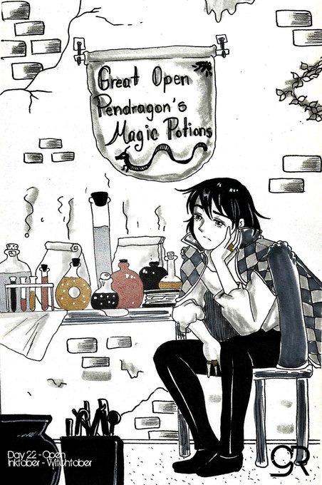 Inktober + Witchtober 2021 Día 22 - Open (Abierto) Howl, de la película "El Castillo Ambulante", abriendo su changarro de pociones. #Inktober #Witchtober #TraditionalDrawing #Sketch #Ink #Inktober2021 #Witchtober2021 #Open #InktoberOpen #Fanart #Howl #TheMovingCastle