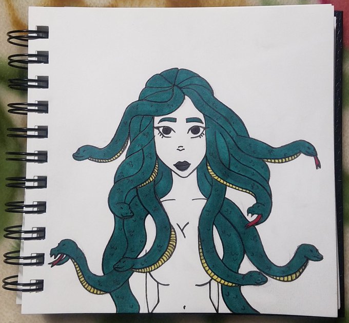 @inktober no. 30 was #slither. A wonderful photo of @hollymarlin from the ref pack by @noahbradley helped a ton! #inktober #inktober2021 #inktoberslither #sketchbook #characterart #characterdesign #woman #femalecharacter #snake #magic #fantasy #fantasyart #gothic #shawl
